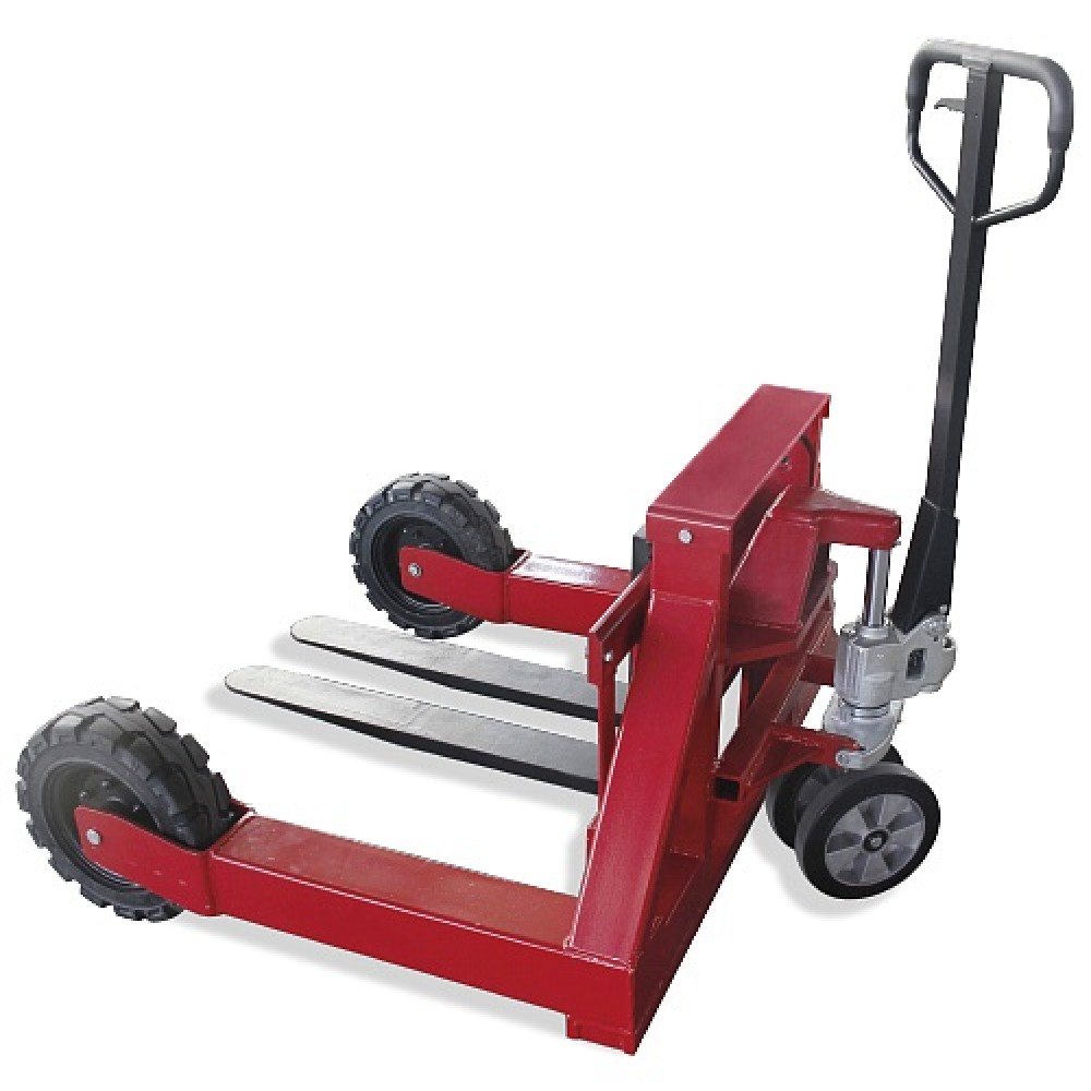 Большие пневматические колёса 350 мм позволяют возить поддоны даже на очень плохих полах